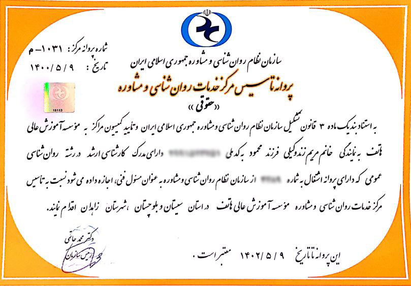 تأسیس مرکز خدمات روانشناسی و مشاوره دانشگاه هاتف